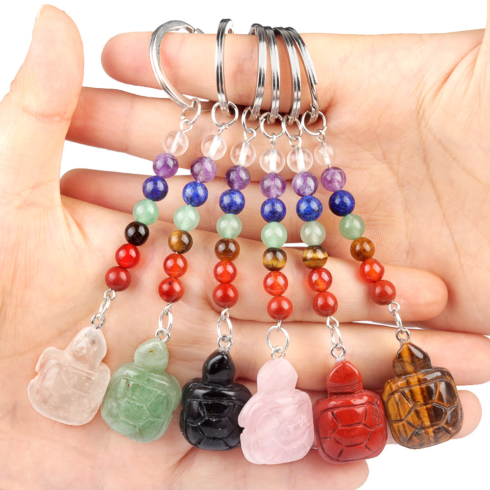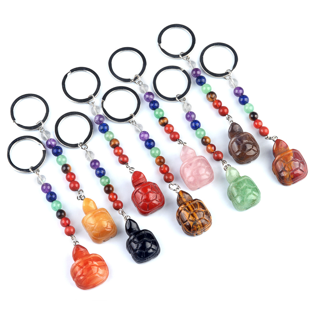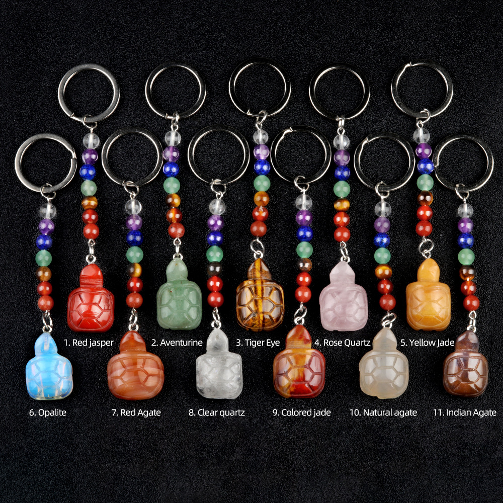 Customizable Semi-Precious Stone Bottle-Shaped Keychains – Manufacturer-Direct with OEM/ODM Service for Gifting, Retail, and Personal Accessory Markets Colorful crystal stone turtle keychain chakra jewelry pendant