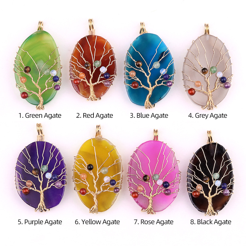 Customizable Semi-Precious Stone Agate Tree of Life Pendants – Manufacturer-Direct with OEM/ODM Service for Jewelry, Spiritual, and Retail Markets Large colorful agate sliced silk tree pendant