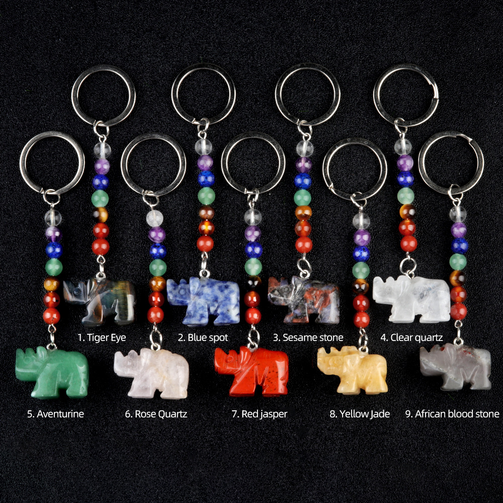 Customizable Semi-Precious Stone Animal-Shaped Keychains – Manufacturer-Direct with OEM/ODM Service for Gifting, Fashion, and Retail Markets Seven-color crystal rhinoceros keychain