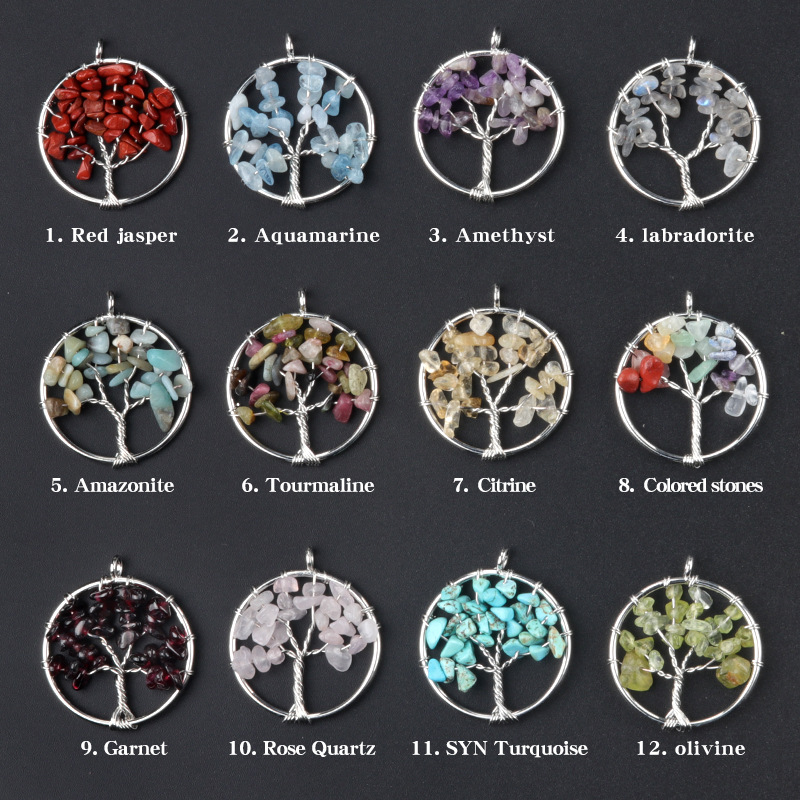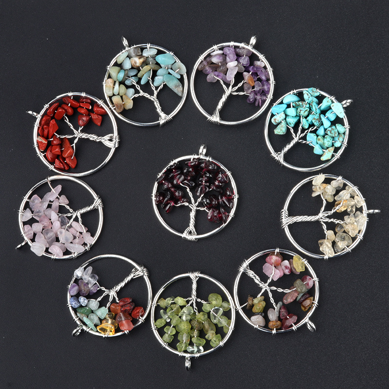 Customizable Semi-Precious Stone Tree of Life Pendants – Manufacturer-Direct with OEM/ODM Service for Jewelry, Spiritual, and Retail Markets Natural crystal gravel life tree pendant