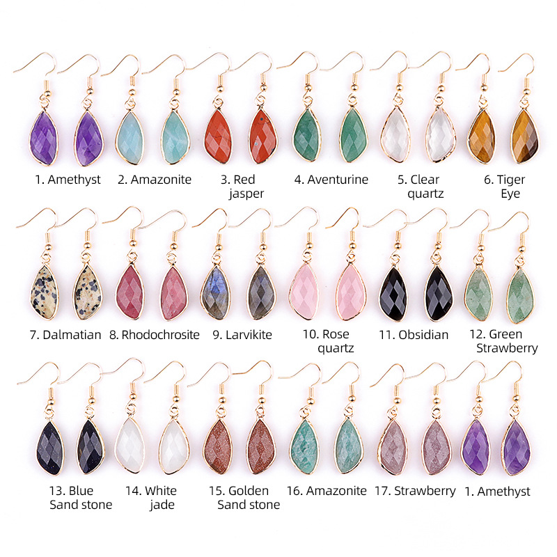 Customizable Semi-Precious Stone Teardrop Earrings – Manufacturer-Direct with OEM/ODM Service for Fashion, Gifting, and Retail Markets Amethyst Pink Crystal Copper Edges