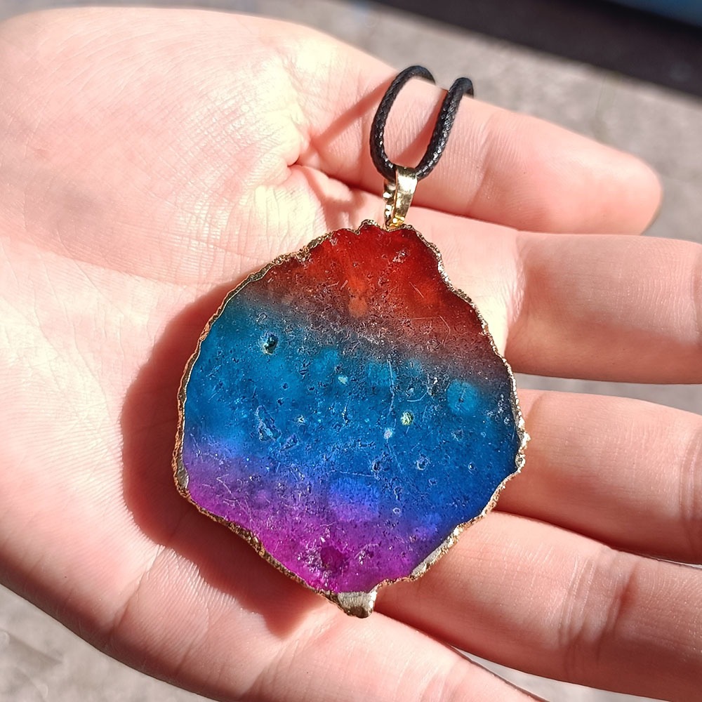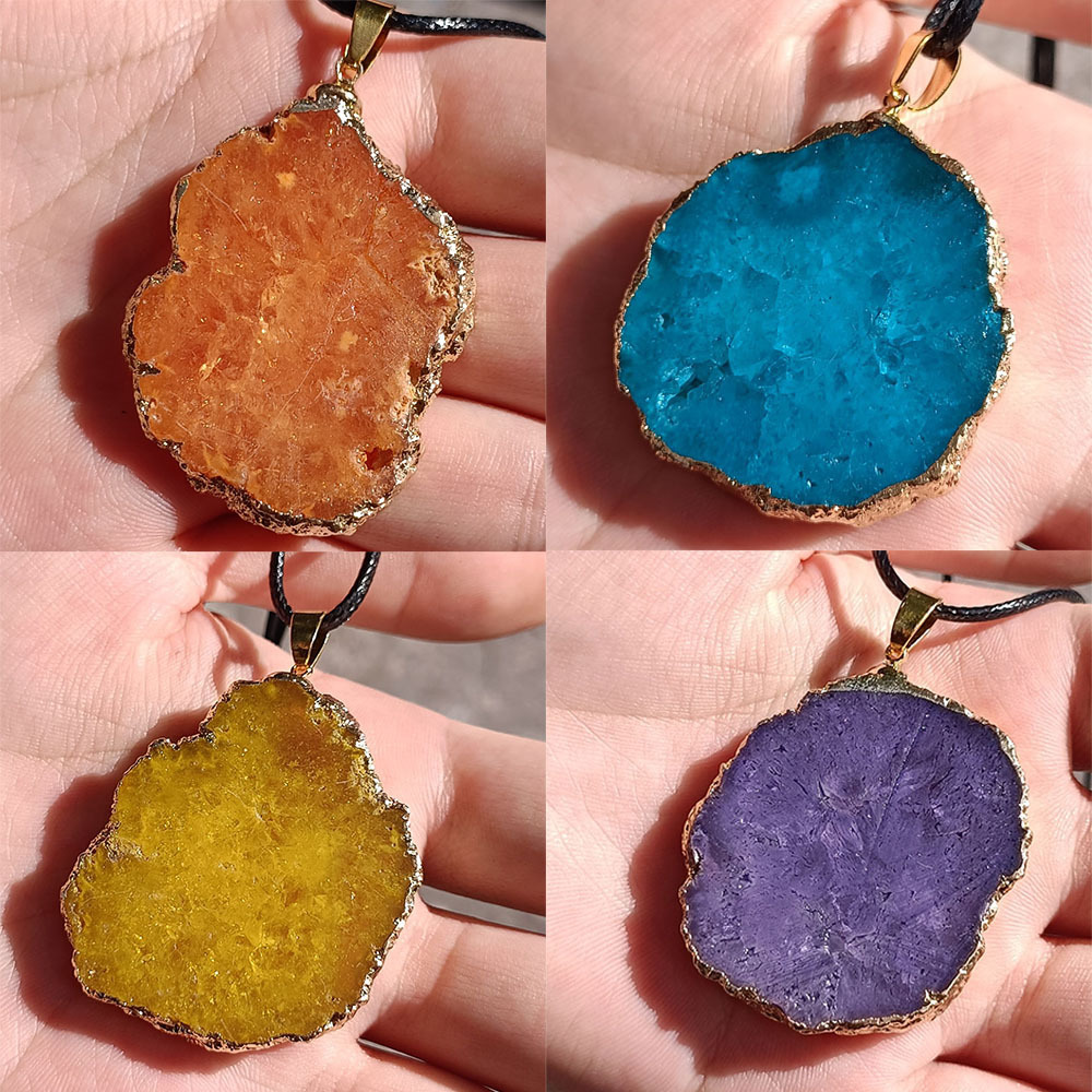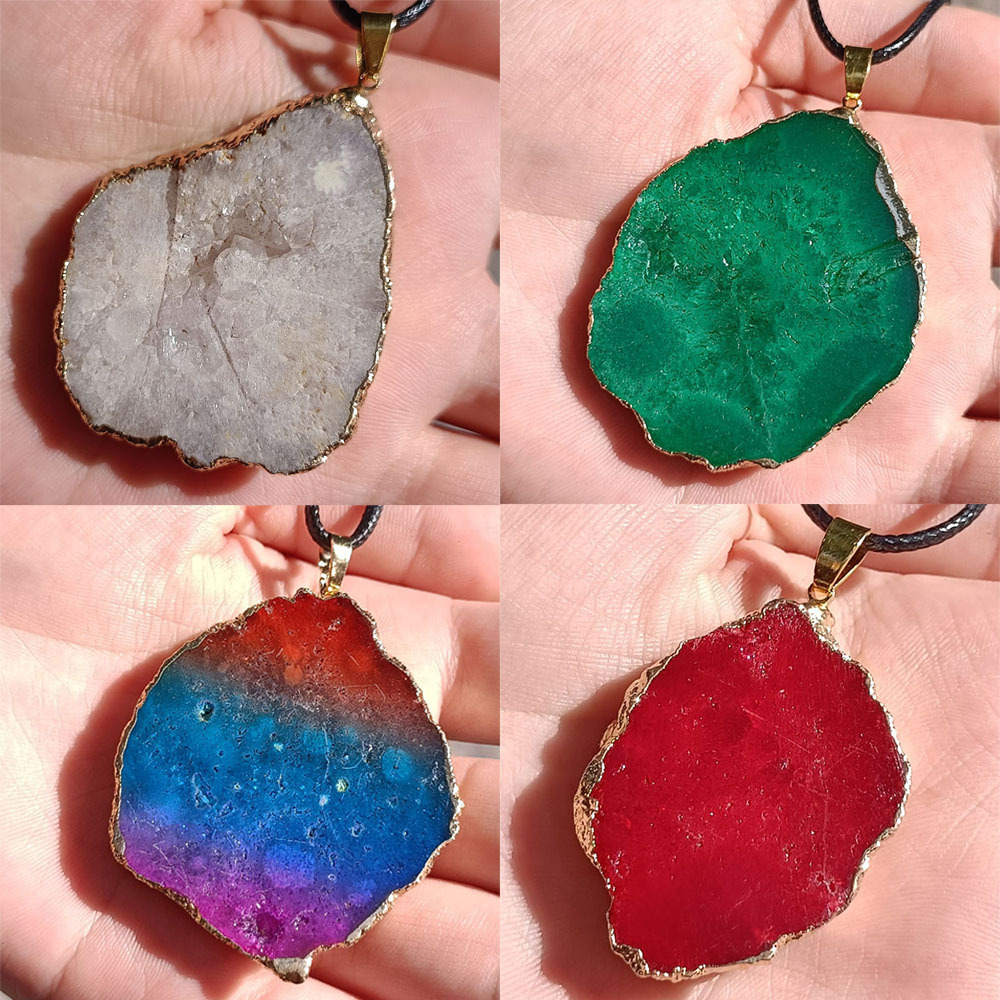 Color electroplating crystal agate piece raw stone pendantColorful Druzy Geode Slice Necklaces – Manufacturer-Direct Semi-Precious Stone Jewelry for Daily Wear, Gifting & Spiritual Scenarios
